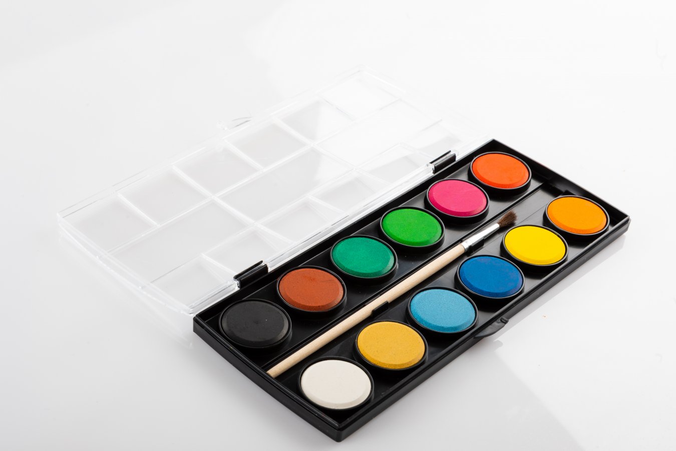 Tabletele rotunde de vopsea sunt plasate într-o cutie de plastic care se sigilează ermetic și este concepută pentru a minimiza amestecarea accidentală a diferitelor culori.