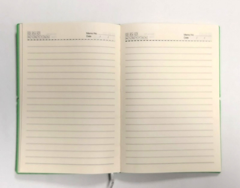 Agenda include 96 pagini dictando cu hartie de culoare crem.