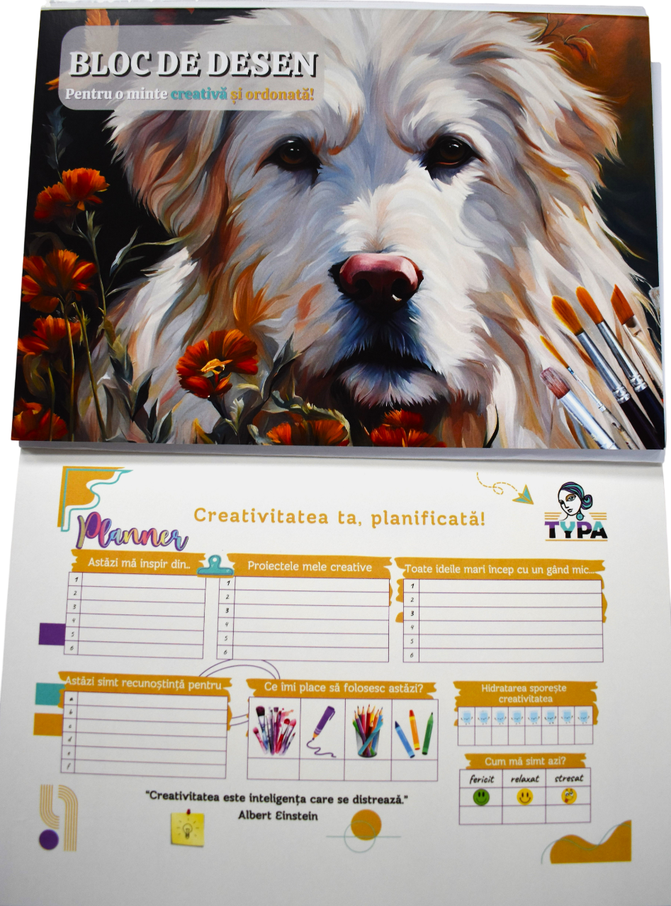 Pe ultima pagina include un planificator de creatie