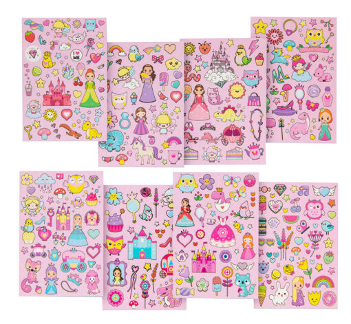 Cartea este disponibilă în două culori (Roz și Albastru) – Fiecare variantă are 8 pagini cu autocolante cu sclipici – Perfect pentru decorarea cadourilor si caietelor