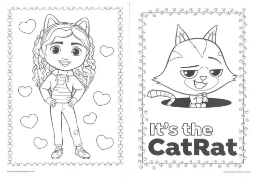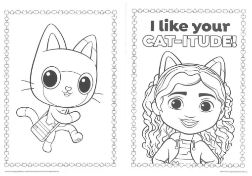 Imagini distractive de colorat în interior, cu Gabby și prietenii ei.