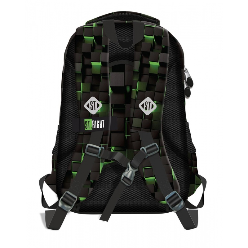 Ghiozdan St.Majewski St.Right Green Game, 44cm, 3 Compartimente, Negru cu Verde