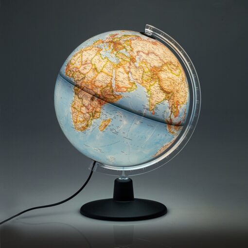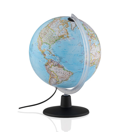 Acest glob clasic și elegant are o bază din lemn premium și un meridian gradat din acril și se rotește în jurul axei sale pentru a oferi o vedere completă a Pământului – 12″/30 cm diametru