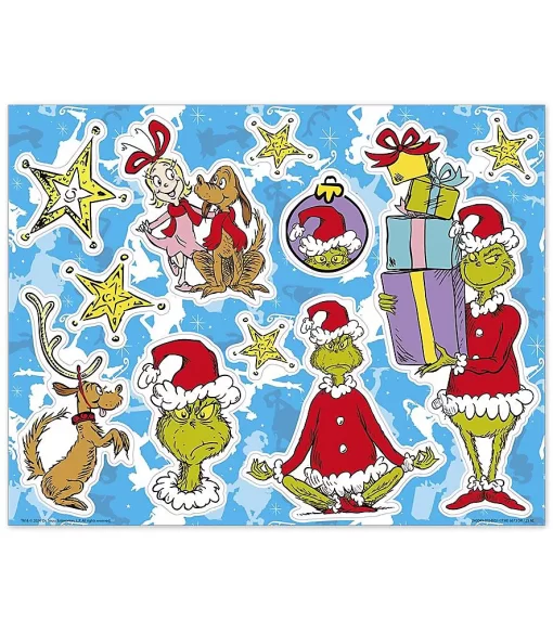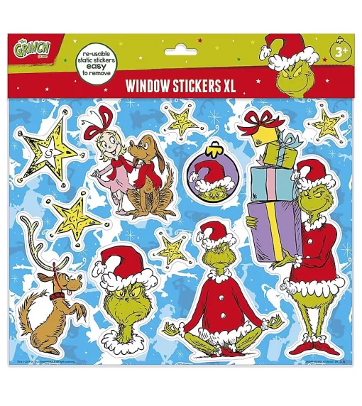 Acest pachet foarte mare de autocolant pentru fereastră cu licență The Grinch are o foaie de autocolante statice reutilizabile care prezintă Grinch și acești prieteni. Autocolantele sunt ușor de îndepărtat și plasat în altă parte, făcându-le perfecte pentru ferestre de Crăciun. Costume pentru varsta de 3 ani +