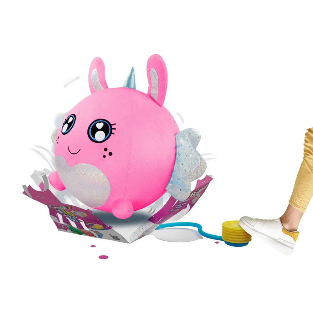 Ambalajul se sparge si se deschide pe masura ce Biggies creste in dimensiuni. Acest iepuras dragalas Biggies roz este acoperit cu un material moale, perfect pentru a fi imbratisat. Pur si simplu dezumflati-l atunci cand nu mai doriti sa va jucati si umflati-l din nou cand sunteti gata pentru distractie!
