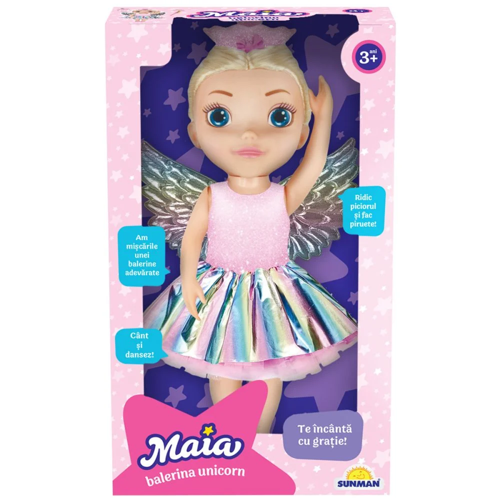 Maia s-a imbracat intr-o rochita colorata, pantofi roz stralucitori, tiara, aripi si bagheta de unicorn si se pregateste sa te incante cu un spectacol de balet uimitor!