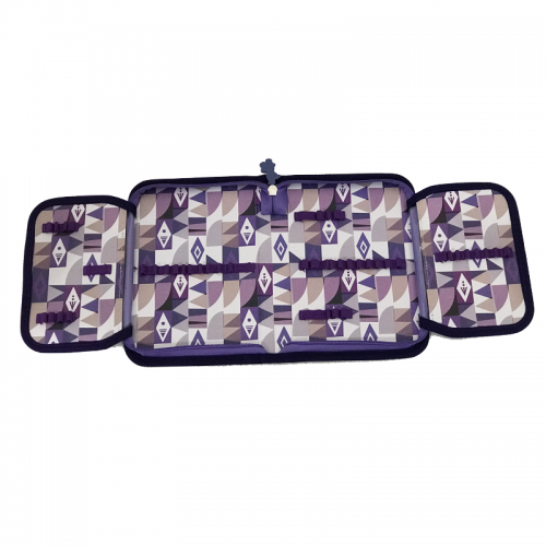 Penar din material textil , 1 fermoar, 2 flapsuri, 29 spatii de depozitare pixuri/creioane, 14 spatii depozitare rezerve stilou, 3 spatii radiera/ascutitoare si 1 spatiu pentru rigla de 15 cm .