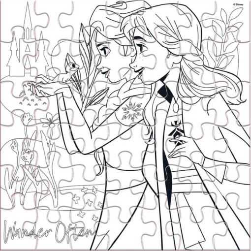 Descoperă un puzzle unic cu Frozen , care oferă o experiență creativă dublă acasă sau la școală! Puzzle-ul cu două fețe prezintă o imagine colorată a lui Frozen pe o parte și o versiune alb-negru pe cealaltă, pe care îl poți colora după cum dorești!