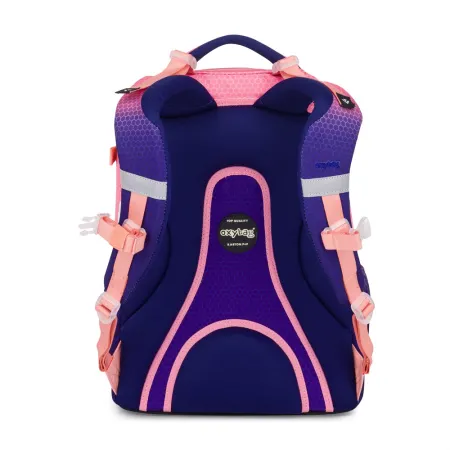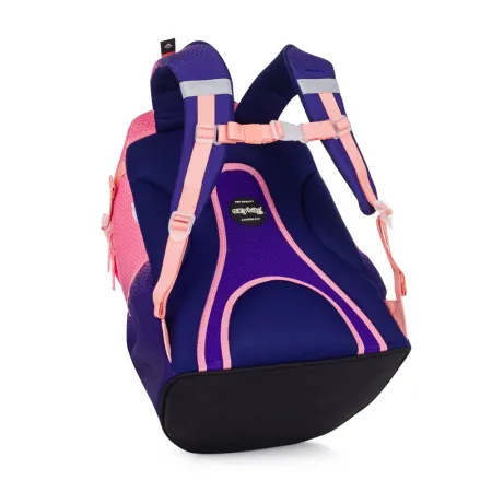 Ghiozdanul școlar din seria OXY Ombre este ideal pentru școlari începând cu clasa a III-a. Designul modern în stil ombre îți va atrage atenția de la prima vedere. Panoul din spate cu formă anatomică, bretelele căptușite și cureaua reglabilă pentru stern vor asigura un spate moale pentru fiecare școlar. Fundul solid previne răsturnarea rucsacului independent. Rucsacul are două buzunare spațioase pentru toate rechizitele școlare necesare. Buzunarele laterale elastice au spațiu pentru o sticlă de băut, ușor accesibilă pentru a completa rutina de băut a fiecărui școlar. O mică gustare poate fi ascunsă cu ușurință în buzunarul din față. Există multe elemente reflectorizante. Rucsacul este potrivit pentru copii cu înălțimea de la 136 cm. Lungimea panoului din spate este de 43 cm, volumul este de 28 l, greutatea rucsacului este de 960 g, iar capacitatea sa de încărcare este de 8 kg.