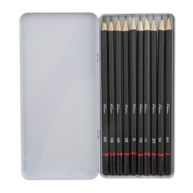 Varietate de Tarii intr-o Cutie Eleganta: Setul nostru de creioane grafit acopera o gama larga de tarii, de la H la 6B, oferindu-ti posibilitatea de a exprima diverse nuante in fiecare creatie. Fiecare creion este ambalat individual intr-o cutie de metal, pastrandu-le in siguranta si usor accesibile.