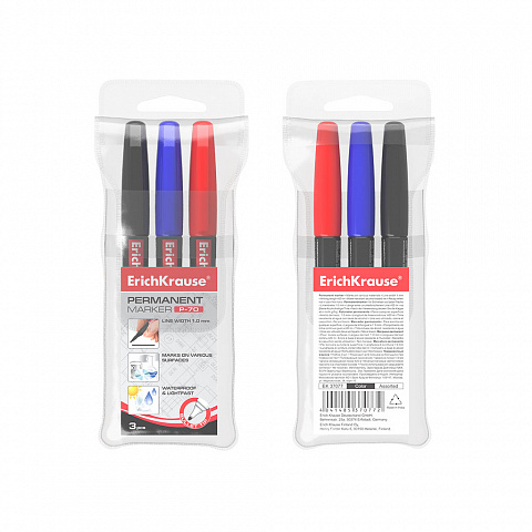 Adaugati in cos Set 3 marker permanent ErichKrause P-70 negru , albastru , red disponibil la cel mai bun pret doar pe TYPA.ro