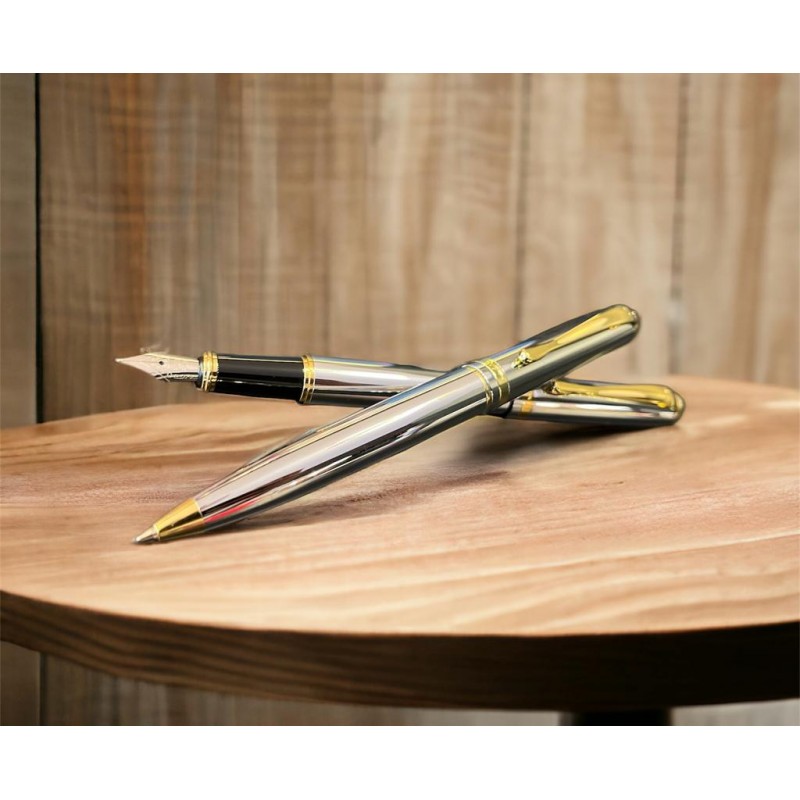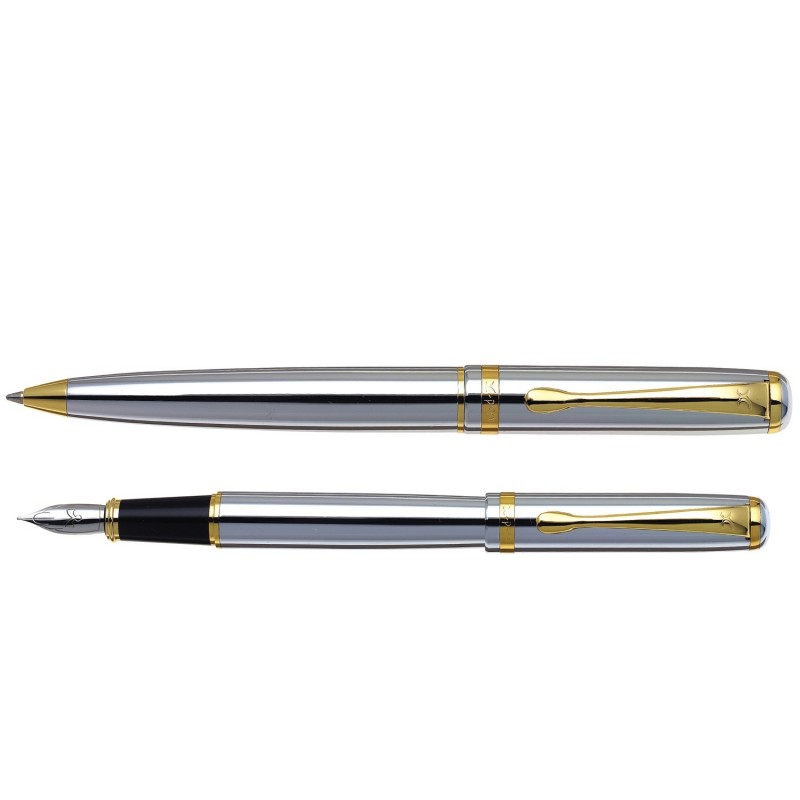Set PODIUM pix si stilou cromat lucios acc.aurii