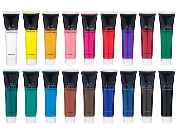 Set de culori acrilice Nassau Fine Art într-un pachet mare, potrivit pentru începători, dar și pentru mai avansați.