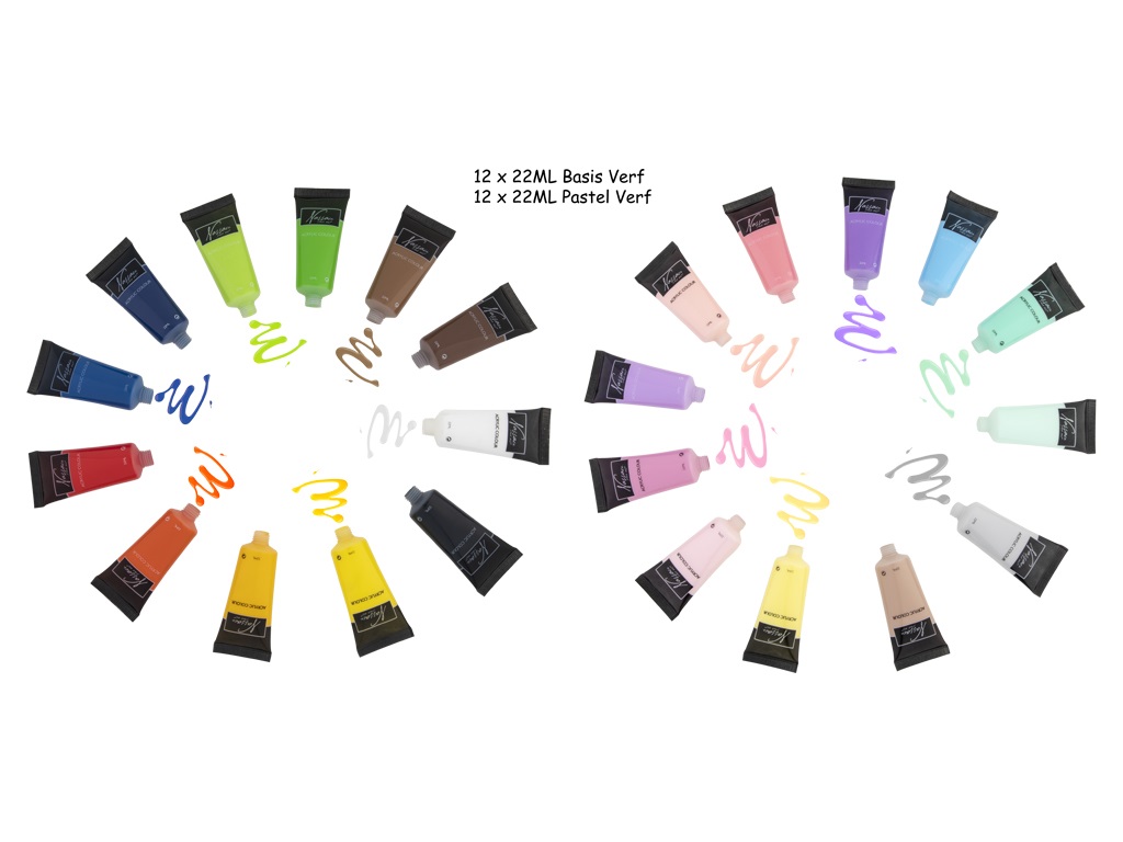 - pachetul contine: 24 culori x 22 ml culori acrilice