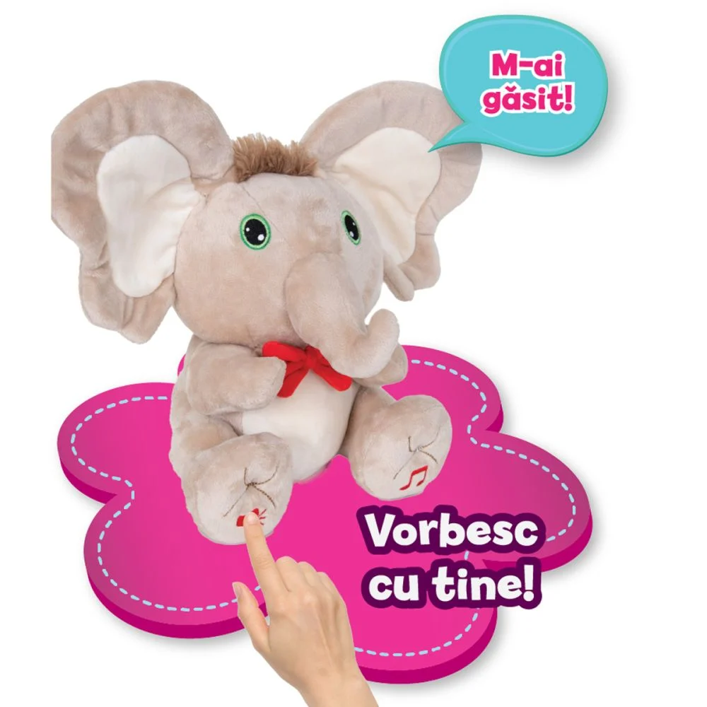 Sunt eu, elefantelul dragalas care da din urechi, canta si vorbeste cu bebe! Apasa pe talpa mea dreapta ca sa asculti o melodie sau apasa pe talpa mea stanga ca sa ne jucam!